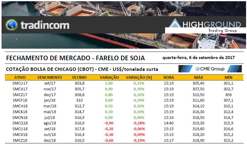 Fechamento de Mercado – Farelo de Soja – 06.09.17