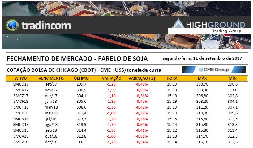 Fechamento de Mercado – Farelo de Soja – 11.09.17