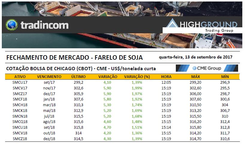 Fechamento de Mercado – Farelo de Soja – 13.09.17