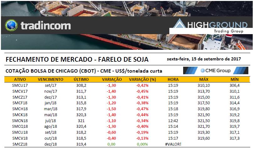 Fechamento de Mercado – Farelo de Soja – 15.09.17