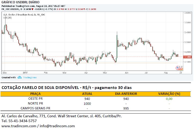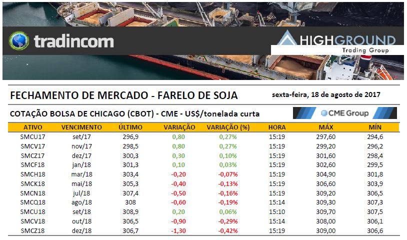 Fechamento de Mercado – Farelo de Soja – 18.08.17