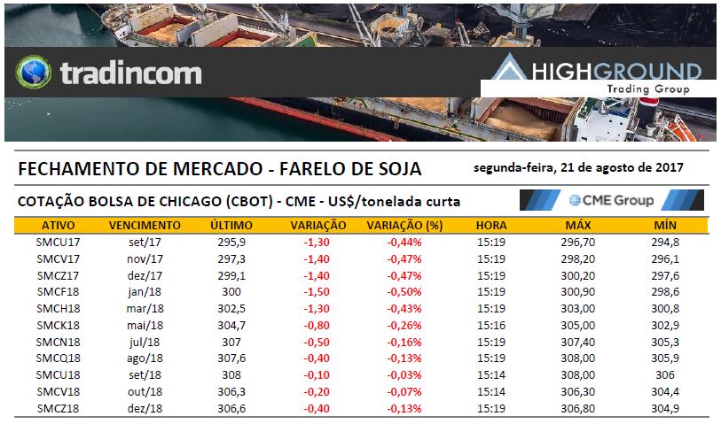 Fechamento de Mercado – Farelo de Soja – 21.08.17