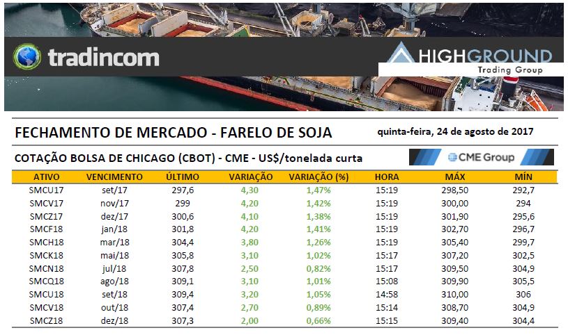 Fechamento de Mercado – Farelo de Soja – 24.08.17