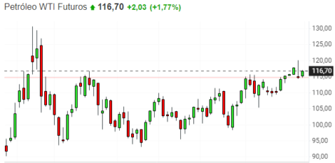 Os futuros do petróleo sobem quase 2% após a forte volatilidade da véspera. Ontem as cotações do petróleo chegaram a ter forte alta depois que os líderes da UE chegaram a um acordo para proibir 90% do petróleo russo até o final do ano, porém encerraram o dia em baixa com a notícia de que a OPEP (Organização dos Países Exportadores de Petróleo) estaria considerando suspender a Rússia do acordo de produção do grupo.