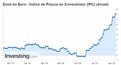 A inflação ao consumidor da zona do euro subiu a taxa anualizada de 8,1% em maio, para o maior nível desde o início da série histórica em 1979, segundo a Eurostat.