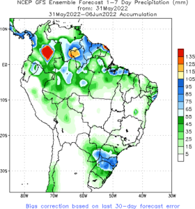 Previsão de Precipitação Brasil, 7 dias, em milímetros.