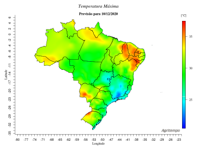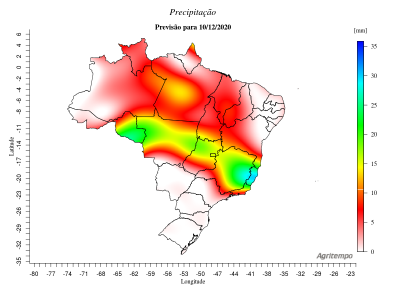 Previsão de Precipitação Brasil, 24 horas, em milímetros.