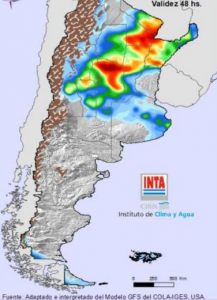 Na Argentina, tempo chuvoso no Centro-Norte amanhã..