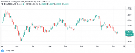 No Brasil o dólar sobe em dia de Copom. Ontem a moeda subiu 0,16%, a R$5,1265. O Comitê de Política Monetária (Copom) do Banco Central divulga hoje, depois do fechamento dos mercados, a decisão dos juros do Brasil, com expectativa de manutenção da meta da Selic em 2% ao ano. O Banco Central realizou hoje leilão de 16 mil contratos de swap cambial tradicional para rolagem de contratos com vencimento em abril e agosto de 2021. A inflação medida pelo Índice Geral de Preços-Mercado (IGP-M) subiu 1,28% na primeira prévia de dezembro, após alta de 2,67% no mesmo período do mês anterior, segundo a Fundação Getulio Vargas (FGV). Com o resultado, o acumulado dos últimos 12 meses passou de 23,79% para 23,52%. “Apesar da descompressão do IPA, o IPC voltou a acelerar refletindo alta nos preços de alimentos (0,82% para 1,27%), das passagens aéreas (1,56% para 26,08%) e da energia elétrica (0,00% para 1,25%). Por fim, o INCC continua revelando pressão no grupo materiais, equipamentos e serviços, cuja taxa pouco se alterou passando de 2,45% para 2,32%”, explicou o coordenador dos índices de preços da FGV/Ibre, André Braz.