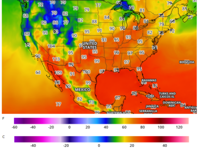 Nos EUA, tempo chuvoso em parte do Meio-Oeste hoje.