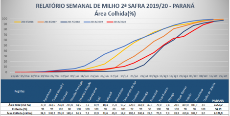 A colheita do milho 2a safra 2019/20 no Paraná atingiu 94,19%, levemente atrasado em relação aos anos anteriores, segundo a SEAB/Deral.