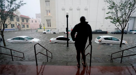 Enchentes cercam carros na manhã de quarta-feira em Pensacola, Florida. Fonte: CNN