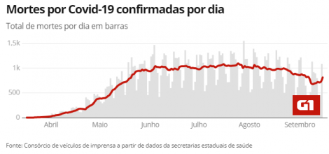 No Brasil, o número de casos de COVID-19 subiu para 4.384.860 hoje, de 4.356.690 até ontem, segundo o consórcio de veículos de imprensa a partir de dados das secretarias estaduais de Saúde. O número de mortos chegou a 133.217, de 132.297 até ontem. O número de pacientes recuperados somam 3.671.128, de 3.613.184 até ontem.
