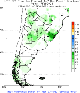 Previsão de Precipitação Argentina, 7 dias, em milímetros.