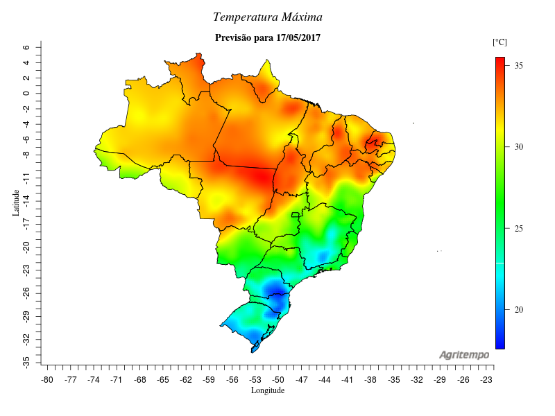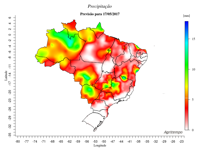 Previsão de Precipitação Brasil, 24 horas, em milímetros.