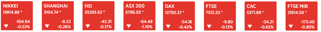 As bolsas asiáticas fecharam em baixa hoje após 4 sessões seguidas de alta. O restante das bolsas mundiais operam em baixa com a crise política nos EUA.