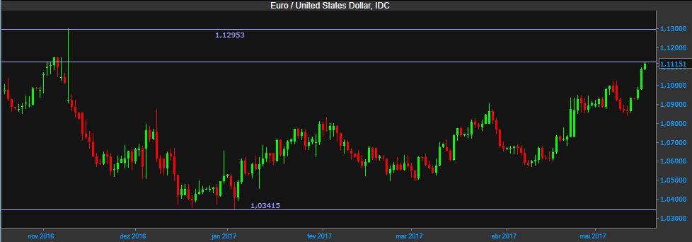 O dólar segue em baixa frente a outras moedas após 2 escândalos envolvendo o presidente dos EUA, Donald Trump, em menos de 24 horas. O New York Times divulgou ontem uma matéria em que Trump pediu ao então diretor do FBI, James Comey, para encerrar uma investigação sobre as ligações entre o então conselheiro de segurança nacional da Casa Branca, Michael Flynn, e a Rússia, o que caracterizaria No dia anterior o Washington Post havia divulgado notícia alegando que o presidente dos EUA, Donald Trump, revelou informações confidenciais ao principal diplomata da Rússia durante uma reunião no Salão Oval na semana passada. Hoje o presidente da Rússia, Vladimir Putin, afirmou que estaria disposto a compartilhar a gravação do encontro.