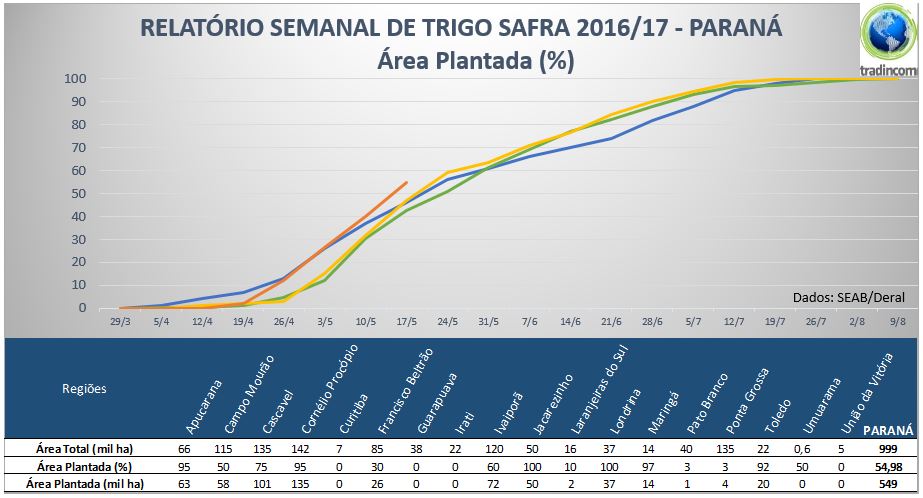 O plantio de trigo no Parará atingiu 55%, mais acelerado do que nos anos anteriores.