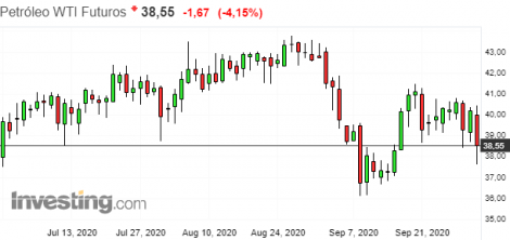 Os futuros do petróleo recuam após relatório mostrar que a produção da OPEP+ aumentou em setembro em relação a agosto. Uma pesquisa da Reuters mostrou que a produção da OPEP em setembro subiu 160.000 barris por dia (bpd) em relação ao mês anterior. As exportações do grupo subiu para 22,84 milhões de bpd em setembro, de 22,11 milhões exportados em agosto. Especificamente para a OPEP, suas exportações passaram de 17,53 milhões de bpd em agosto para 18,2 milhões de bpd em setembro.