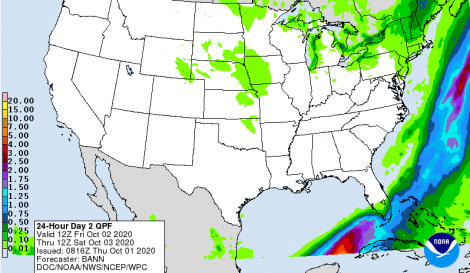 Previsão de Precipitação EUA, 24 horas, em polegadas.