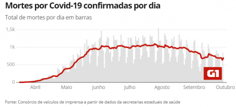 No Brasil, o número de casos de COVID-19 subiu para 4.813.586 hoje, de 4.780.317 até ontem, segundo o consórcio de veículos de imprensa a partir de dados das secretarias estaduais de Saúde. O número de mortos chegou a 143.952, de 143.010 até ontem. O número de pacientes recuperados somam 4.180.376, de 4.135.088 até ontem.