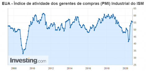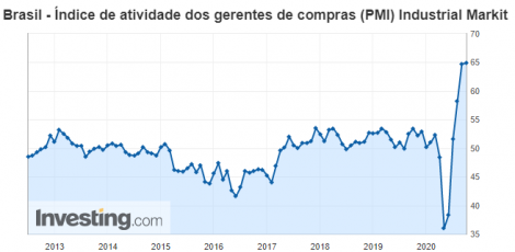 No Brasil o dólar inicia o mês em alta. Ontem a moeda recuou 0,37%, a R$5,6181, encerrando o mês de setembro com alta de 2,5%. O Banco Central realizou hoje leilão de 10 mil contratos de swap cambial tradicional para rolagem de contratos com vencimento em março e julho de 2021. O setor industrial do Brasil medido pelo Índice de Gerentes de Compras (PMI) subiu a 64,9 em setembro, de 64,7 em agosto, para o nível mais alto desde o início da série histórica, em fevereiro de 2006, segundo o IHS Markit. “Várias empresas sugeriram que as restrições mais brandas contra a Covid-19 as ajudaram a garantir um número positivo de novas encomendas, com a depreciação do real contra o dólar sustentando a primeira alta nas exportações em mais de um ano”, disse a diretora associada de economia do IHS Markit, Pollyanna De Lima.