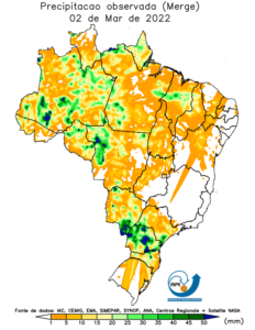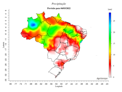 Previsão de Precipitação Brasil, 24 horas, em milímetros.