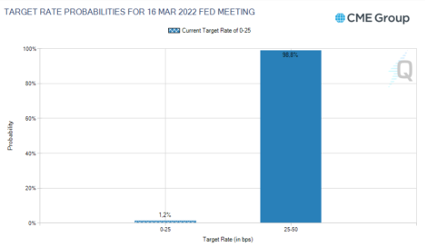 O dólar opera em alta frente a outras moedas. Em discurso no dia de ontem, o presidente do Federal Reserve, Jerome Powell, sinalizou que o BC deve elevar menos do que o esperado os juros no país em meio a Guerra entre Rússia e Ucrânia, e disse apoiar uma alta de 0,25 ponto percentual nos juros na reunião do próximo dia 16. Após as falas de Powell, o mercado financeiro reduziu de 33,7% para 0% as chances de uma elevação de 0,5 ponto percentual na próxima reunião, com 98,8% prevendo uma alta de 0,25 ponto percentual.