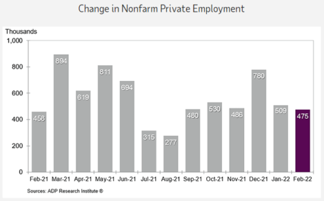 O setor privado dos EUA criou 475 mil postos de trabalho em fevereiro, após criação de 509 mil em janeiro (revisado de -301k), segundo o Relatório Nacional de Empregos da ADP. O número veio acima da expectativa média do mercado, que era de 380 mil vagas. O relatório da ADP é considerado uma prévia do Payroll, que será divulgado amanhã.