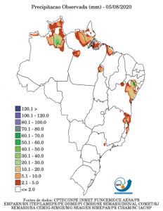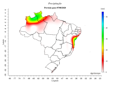 Previsão de Precipitação Brasil, 24 horas, em milímetros.