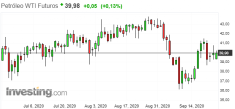 Os futuros do petróleo também sobem recuperando as perdas recentes.