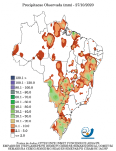 As exportações brasileiras de soja somam 1,89 milhão de toneladas em outubro, até a 4a semana, contra 5,08 milhões de todo o mês de outubro de 2019. Na média diária as exportações de soja estão em 118 mil toneladas, contra 231 mil de outubro de 2019, uma redução de 49%. As exportações de milho somam 4,31 milhões de toneladas, contra 6,02 milhões do ano anterior, com a média diária em 269 mil toneladas, praticamente em linha com o mesmo mês do ano anterior.