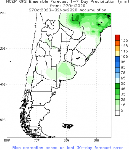 Previsão de Precipitação Argentina, 7 dias, em milímetros.