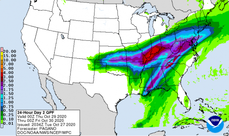 Nos EUA, a passagem do furacão Zeta provoca chuvas na porção leste do país.