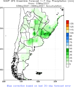 Previsão de Precipitação Argentina, 7 dias, em milímetros.
