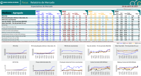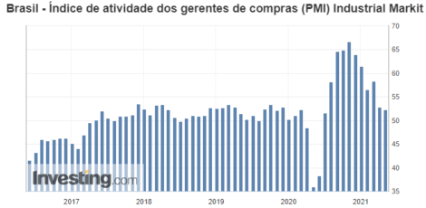 Os setores industrial e de serviços do Brasil medido pelo Índice de Gerentes de Compras (PMI) caiu para 52,3 pontos em abril, de 52,8 pontos em março, segundo a IHS Markit. “As taxas de redução nos pedidos de fábrica e na produção foram menos agressivas. Além disso, as empresas contrataram mão de obra extra e se mostraram mais otimistas em relação ao futuro. Os participantes da pesquisa veem a luz no fim do túnel, e muitos acreditam que uma maior disponibilidade de vacinas ajudará a reduzir o ritmo de contágio e superar as restrições”, disse em nota a diretora associada de Economia da IHS Markit, Pollyanna de Lima.