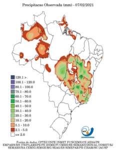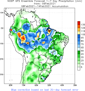 Previsão de Precipitação Brasil, 7 dias, em milímetros.