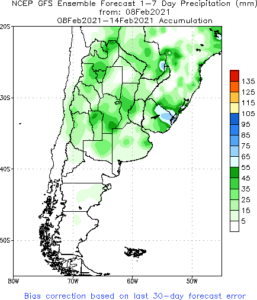 Previsão de Precipitação Argentina, 7 dias, em milímetros.