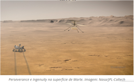 O rover Perseverance, que está a caminho de Marte – com previsão de chegada para o próximo dia 18 – traz dentro de si um equipamento que fará sua estreia nas missões de exploração da Nasa. O helicóptero Ingenuity fará os primeiros voos controlados em outro planeta, enquanto registra imagens de um antigo leito marciano.