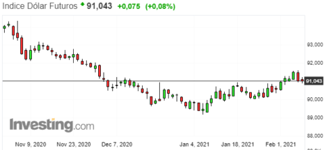O dólar opera com leve alta frente a outras moedas. A Secretária do Tesouro dos EUA, Janet Yellen, disse ontem em entrevista à CNN que os EUA podem retornar ao pleno emprego em 2022 se o pacote de resgate de coronavírus de US$ 1,9 trilhão do presidente Joe Biden for aprovado. O pacote é dividido em duas grandes iniciativas: a primeira inclui pagamentos diretos aos americanos, benefícios semanais de desemprego até setembro e financiamento para vacinas e testes, e a segunda se concentrará na reforma da infraestrutura, mudança climática e igualdade racial, entre outras coisas.
