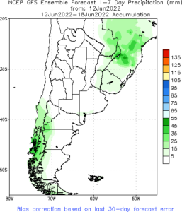 Previsão de Precipitação Argentina, 7 dias, em milímetros.