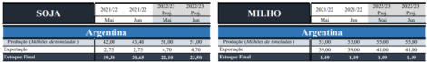 Na safra da Argentina a estimativa de produção de soja 2021/22 foi revisada de 42 milhões para 43,4 milhões de toneladas.