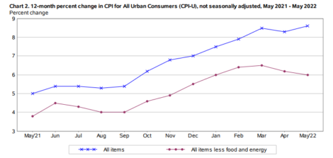 O dólar opera em alta frente a outras moedas após inflação recorde nos EUA. A inflação ao consumidor dos EUA medida pelo índice de preços ao consumidor (CPI) subiu 1% em maio ante abril, após alta de 0,3% em abril, segundo o Departamento de Estatísticas Trabalhistas (BLS). Nos últimos 12 meses, o índice de todos os itens aumentou 8,6% antes do ajuste sazonal, maior taxa desde dezembro de 1981. O aumento foi amplo, com os índices de moradia, gasolina e alimentação sendo os maiores contribuintes. Depois de cair em abril, o índice de energia subiu 3,9% no mês, com o índice de gasolina subindo 4,1% e os outros principais índices de componentes também aumentando. O índice de alimentos subiu 1,2% em maio, enquanto o índice de alimentação em casa aumentou 1,4%.