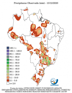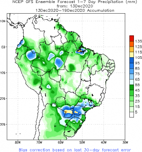 Previsão de Precipitação Brasil, 7 dias, em milímetros.
