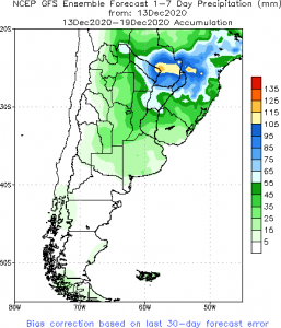 Previsão de Precipitação Argentina, 7 dias, em milímetros.