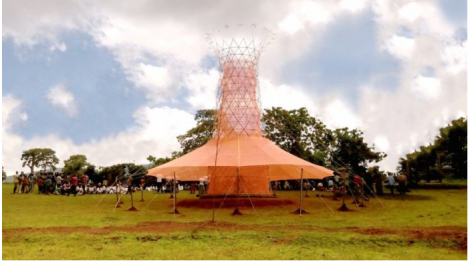A Warka Water Tower é uma torre de 10 metros de altura feita de materiais locais, naturais e biodegradáveis. Possui uma malha laranja resistente à água no interior que coleta a névoa da atmosfera.