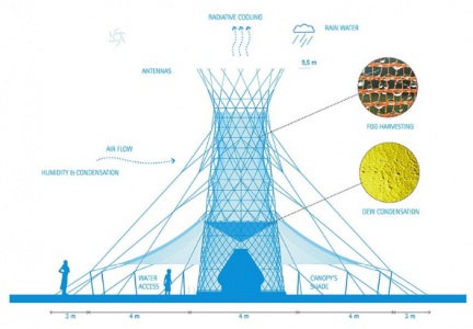 A invenção deles é o Warka Water Tower, que é projetada para coletar até 25 litros de água por dia da atmosfera. Esta estrutura de fácil manutenção depende apenas da gravidade, condensação e evaporação.