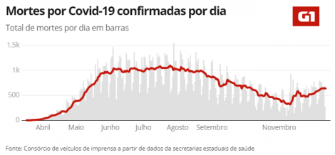No Brasil, o número de casos de COVID-19 subiu para 6.901.952 hoje, de 6.781.799 até sexta-feira, segundo o consórcio de veículos de imprensa a partir de dados das secretarias estaduais de Saúde. O número de mortos chegou a 181.402, de 179.765 até sexta-feira. O número de pacientes recuperados somam 6.138.349, de 6.043.219 até sexta-feira.