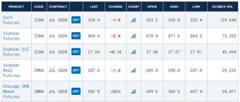 Boa tarde, a Bolsa de Chicago opera em baixa nos principais ativos com os temores sobre uma segunda onda de contágio do coronavírus derrubando as bolsas globais. As preocupações vêm do surgimento repentino de novos casos na China, que passou as últimas semanas praticamente sem nenhuma nova infecção.