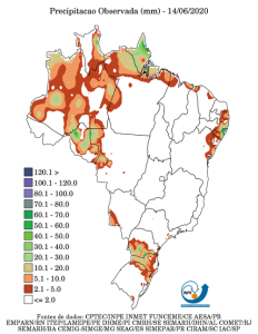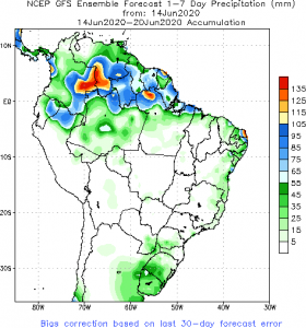 Previsão de Precipitação Brasil, 7 dias, em milímetros.